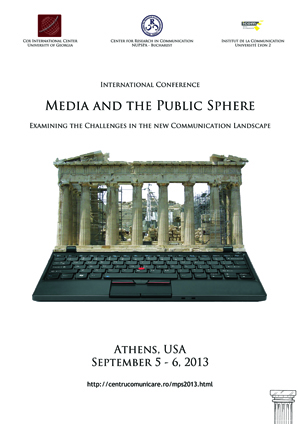 - Conferință internațională: Media and the Public Sphere: Examining the Challenges in the New Communication Landscape (5-6 septembrie 2013, Athens, SUA)